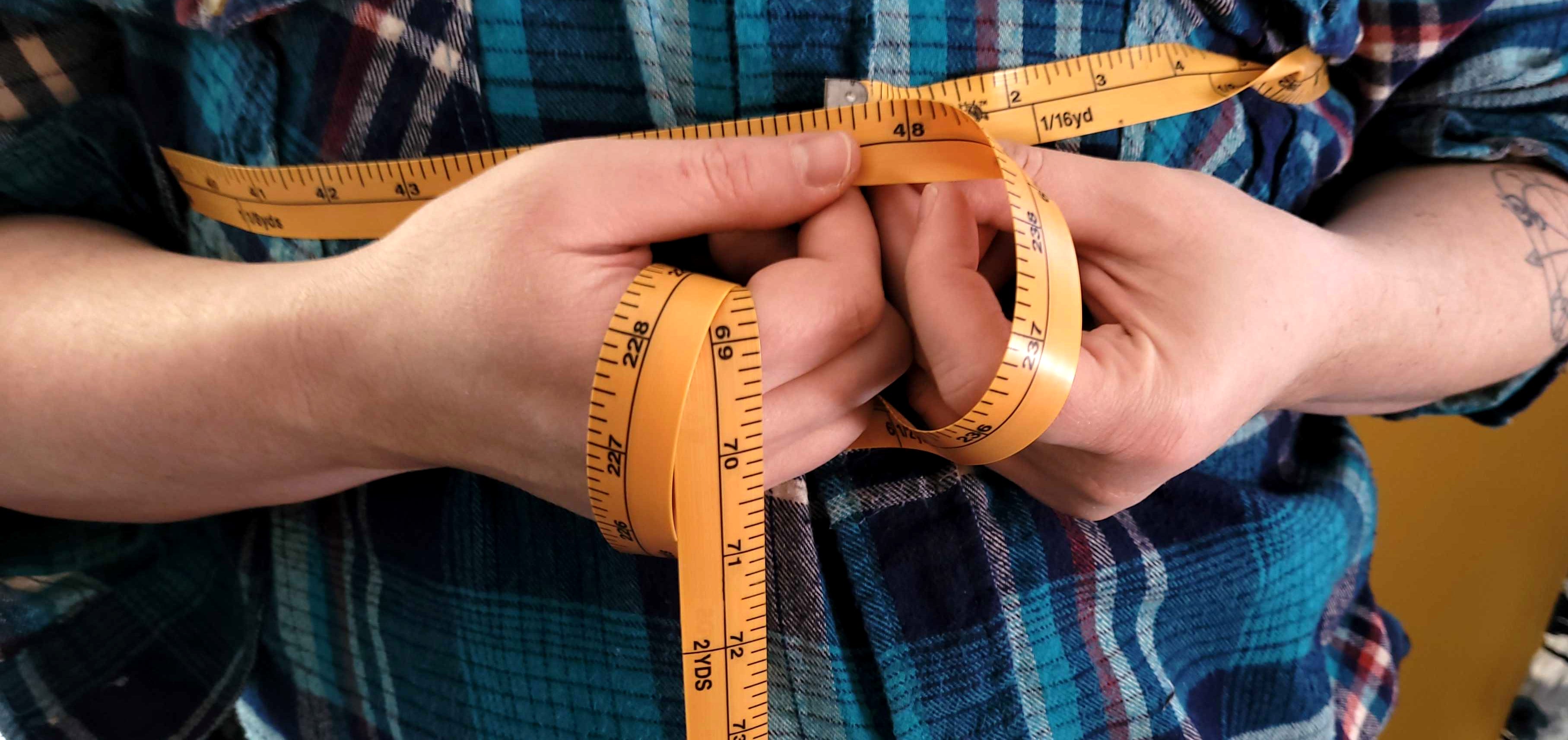 Hips: Wrap the tape measure around where you want the binder to end. Do not pull overtight.