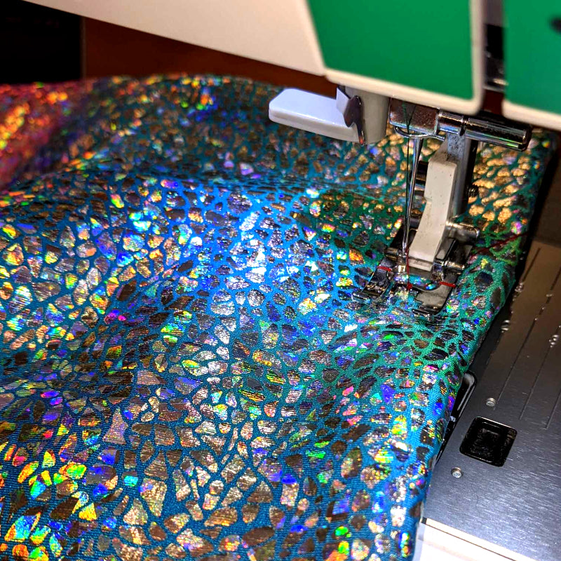 "Okay so first of all, wow. I think I must've said "Wow" a dozen times the first time I saw myself in the mirror. My partner and I were both just standing there agog while I turned and saw all the angles. My disabled body hasn't been able to tolerate traditional binders for years and years, but because this one is custom sized and has the zipper down the side, I'm having no issues whatsoever, I can get it on and off no problem and it's incredibly comfortable. This honestly does not even feel like I'm used to a binder feeling and yet I am properly flat, and I haven't seen my body look like this in years! And it's a beautiful object just in and of itself--I got a one-off fabric and it's SO cool. I'm totally blown away.... Thank you for making my experience of my body